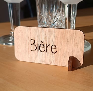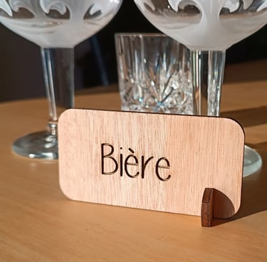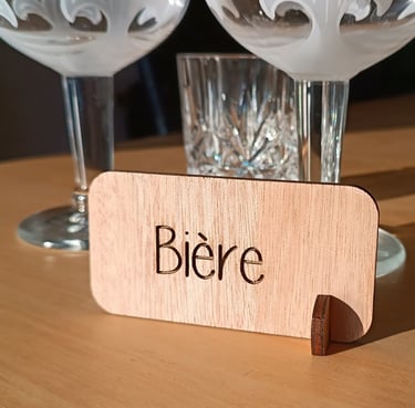 Ces étiquettes en bois gravées permettent de signifier clairement à vos invités les différents choix de boissons qui s'offrent à eux.