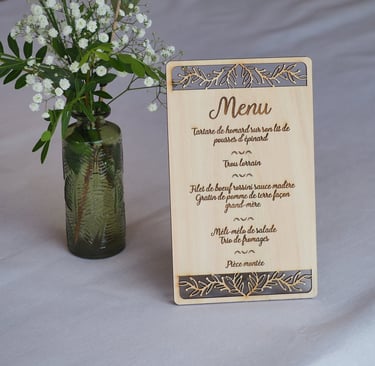Tous les menus peuvent être déclinés en plans de tables, numéros de tables ou autre affichage de votre choix.