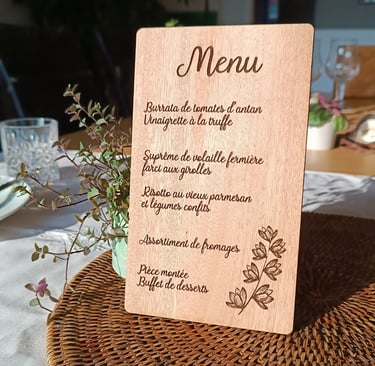 Tous les menus peuvent être déclinés en plans de tables, numéros de tables ou autre affichage de votre choix.