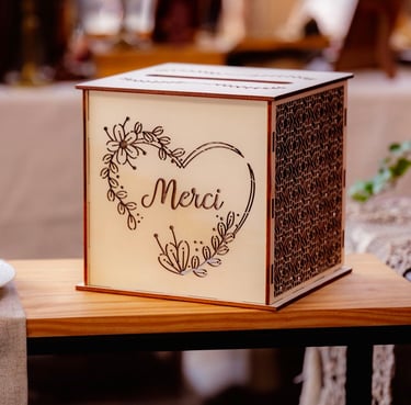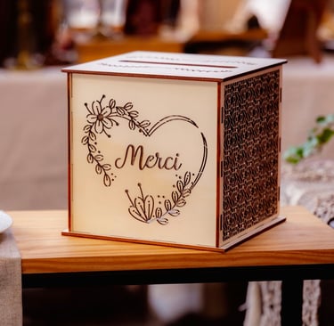L'urne, permettant de recevoir les cartes, mots et pensées de vos invités, se doit d'être un objet unique.
